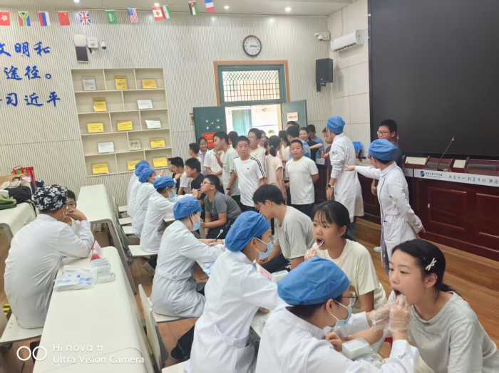 签约仪式后,我院口腔正畸科专家团队为同学们开展了细致专业的口腔健康义诊服务。专家们耐心为每一位学生进行口腔检查,解答各类口腔问题,并提供个性化诊疗建议。同时,通过生动有趣的互动方式,向同学们普及了正确刷牙、科学使用牙线等日常口腔保健知识,增强了大家对口腔健康重要性的认识。