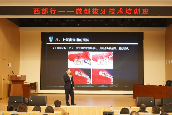 10月31日的培训内容侧重于规范化操作与术后综合管理。空军军医大学第三附属医院口腔外科主任薛洋以生动明晰的教学方式,讲解了常规拔牙与复杂拔牙的手术操作技巧,实现了规范性与创新性的有效结合。