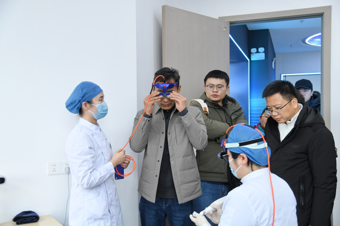媒体记者们在医院党委书记刘颀、院长王元银,副处级组织员吴卫的陪同下,围绕“健康口腔,安徽在行动——聚焦新院区、新技术、新服务”主题,先后参观了医院牙周黏膜科和数字化诊疗中心等重点科室与特色平台。