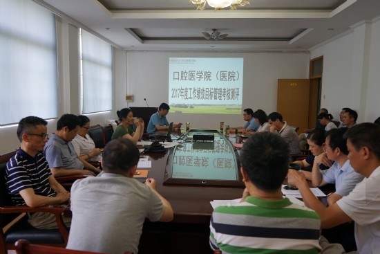 6月13日下午,我院召开2017年工作绩效目标考核测评会,院领导班子、各科室主任参加会议。