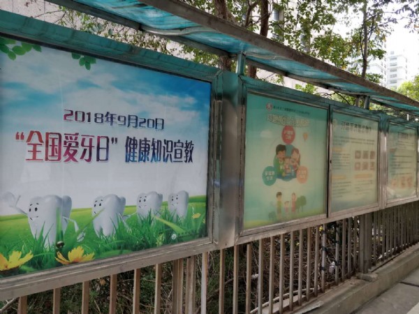 “口腔健康、全身健康”,口腔健康是人体健康的重要标志和组成部分,为提高人民群众的口腔保健意识,让人民群众对口腔健康知识有更深入、更全面的了解,安徽医科大学附属口腔医院通过医院宣传栏开展9·20爱牙日专题科普知识宣传,从儿童牙齿成长、龋齿产生及治疗、牙周病、牙齿修复、牙齿正畸、牙齿种植、牙齿美白等等,以通俗易懂、图文并茂的形式,将现实生活中会遇到的口腔问题和解决方案一 一展现, 更加直观的加强了口腔健康知识的宣传和普及,使人民群众对口腔卫生更加重视,从而实现口腔健康,全身健康的目标,营造全社会共同参与的良好氛围。