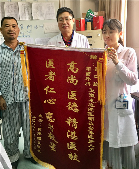 近期,我院口腔颌面外科患者贾建国、杨德胜分别给口外主任王银龙、医生程继光送来锦旗,感谢口腔颌面外科王银龙、程继光及全体医护人员的悉心治疗。
