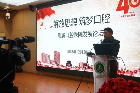余永强指出,附属口腔医院召开庆祝改革开放40周年发展论坛,以“解放思想 筑梦口腔”为主题,献言献计、群策群力,内容丰富,针对性强,值得肯定。这是口腔医院凝聚共识、谋划发展的一个重要契机,有利于引导广大员工深刻认识改革开放是新时代坚持和发展中国特色社会主义、办好社会主义大学的必由之路,有利于进一步写好立德树人“奋进之笔”、开创新时代口腔改革发展新境界。余永强要求,要牢记本心、不忘初心,不忘创办医院的初心,不忘办新时代人民满意的口腔医学教育和口腔医院这个初心;要直面问题、破解难题,在准确把握口腔医院发展现状的基础上,找准不足和问题、短板和瓶颈,不断破解发展难题,保持发展内驱力;要着眼未来、创造未来,在现代医院管理制度建设、医疗核心制度建设、学科学位点建设、高水平人才队伍建设等方面,精准发力、撸起袖子加油干。最后,他勉励大家一定要保持奋发有为的精神状态和敢为人先的胆识气魄,把解放思想体现在具体工作中,落实到推动医院科学发展行动上。