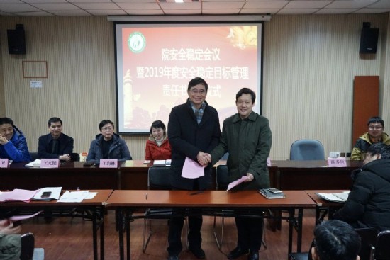 1月11日下午,我院在一楼会议室召开2019年安全稳定工作专题会议暨安全责任书签订仪式,院领导班子、各科室负责人、全体护士长参加了会议。会议由院长何家才主持。