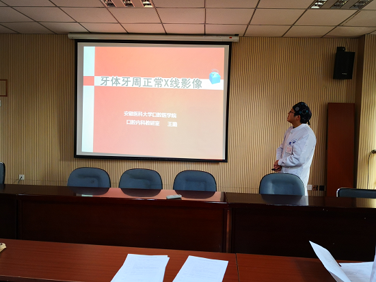 2月25日下午,我院举行2018-2019学年第一学期青年教师试讲活动,来自口腔内科学教研室的王璐医师进行了《牙体牙周组织正常X线影像》教学试讲活动,此前他已经通过科室试讲,本学期将承担本科理论教学任务。附属口腔医院副院长王元银教授、口腔内科学教研室主任李颂教授、副主任徐燕教授,科教办、青年教师、学生代表等参与了此次活动。
