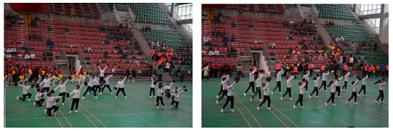 全校女职工积极参与,精心准备。我院啦啦操队由来自各科室的19人组成,队员们以饱满的热情,充满活力的舞姿完美呈现了“舞动青春,健康校园”的主题。整齐划一的步伐、铿锵有力的动作、变幻多姿的队形给在场的评委和观众留下了深刻印象。他们用舞姿诠释了奔放的青春,用活力展示了口院的风采。