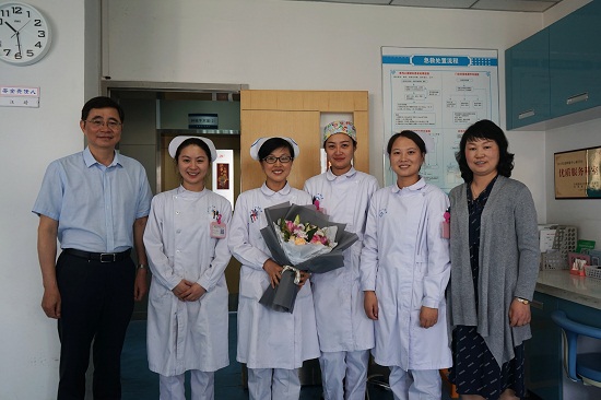 5月10上午,在第108个国际护士节来临之际,院党委书记王润玲、院长何家才,副院长王元银、纪委书记赵新斌、副调研员吴卫带领护理部及相关职能科室负责人,深入各科室及4个分门诊部,为临床一线护理人员送去温馨美丽的鲜花,并亲切留影,表达了深切的慰问和祝福!