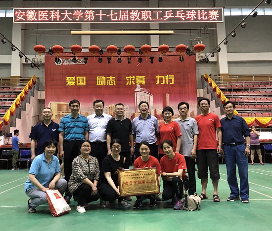 5月11日至12日,由院党委书记王润玲、副院长陈乔尔亲自挂帅的口腔医学院(医院)乒乓球12人代表队参加安徽医科大学在校体育馆举办的第十七届教职工乒乓球比赛。