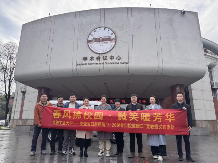 3月30日下午,我院组织骨干医疗团队走进合肥工业大学,以“春风拂校园 微笑暖芳华”为主题,开展科普义诊进校园活动,为在校师生送上专业、便捷的口腔健康服务,随后还参观了合肥工业大学校医院,就校园口腔健康保障工作开展深入交流。